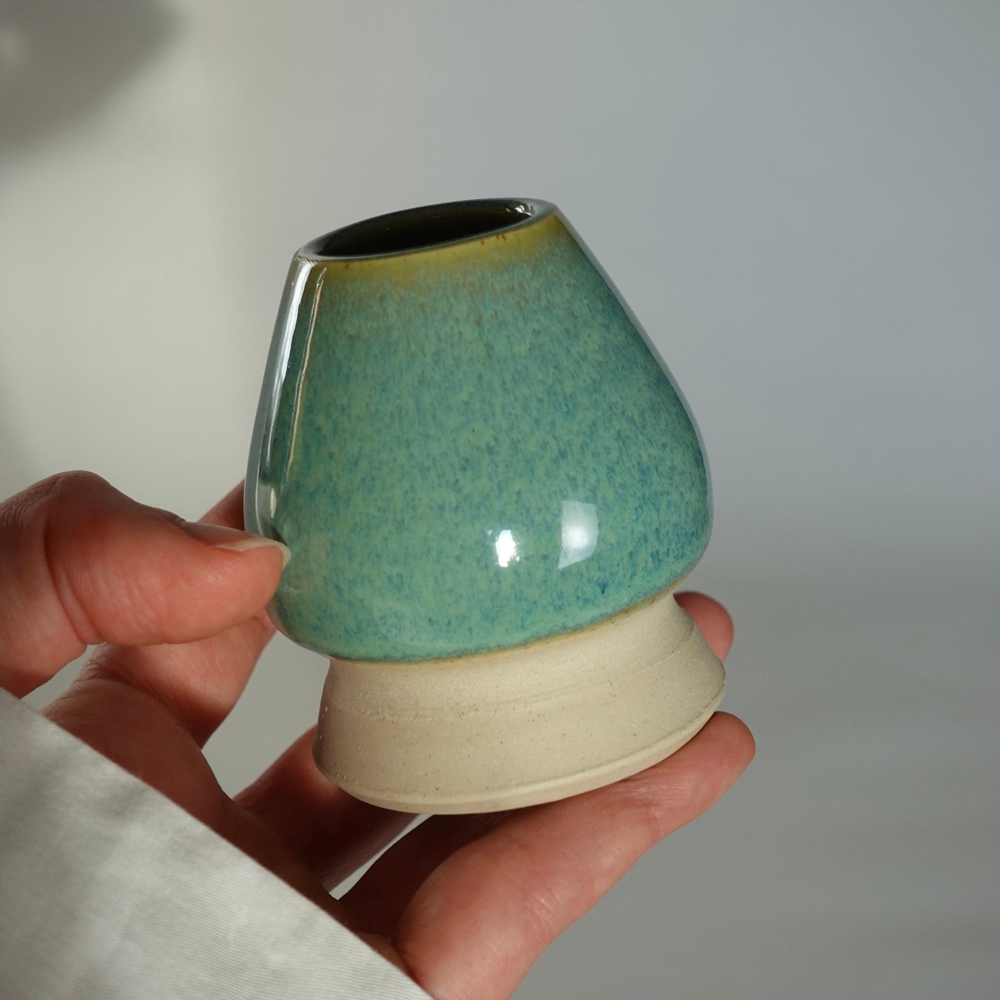 Ce support pour fouet à matcha est façonné à la main sur le tour de potier, ce qui garanti une pièce unique, pleine d'authenticité. Il a été conçu avec soin pour répondre aux besoins des amateurs de matcha. Il permet de préserver la forme et la durée de vie de votre fouet tout en apportant une touche de beauté artisanale.