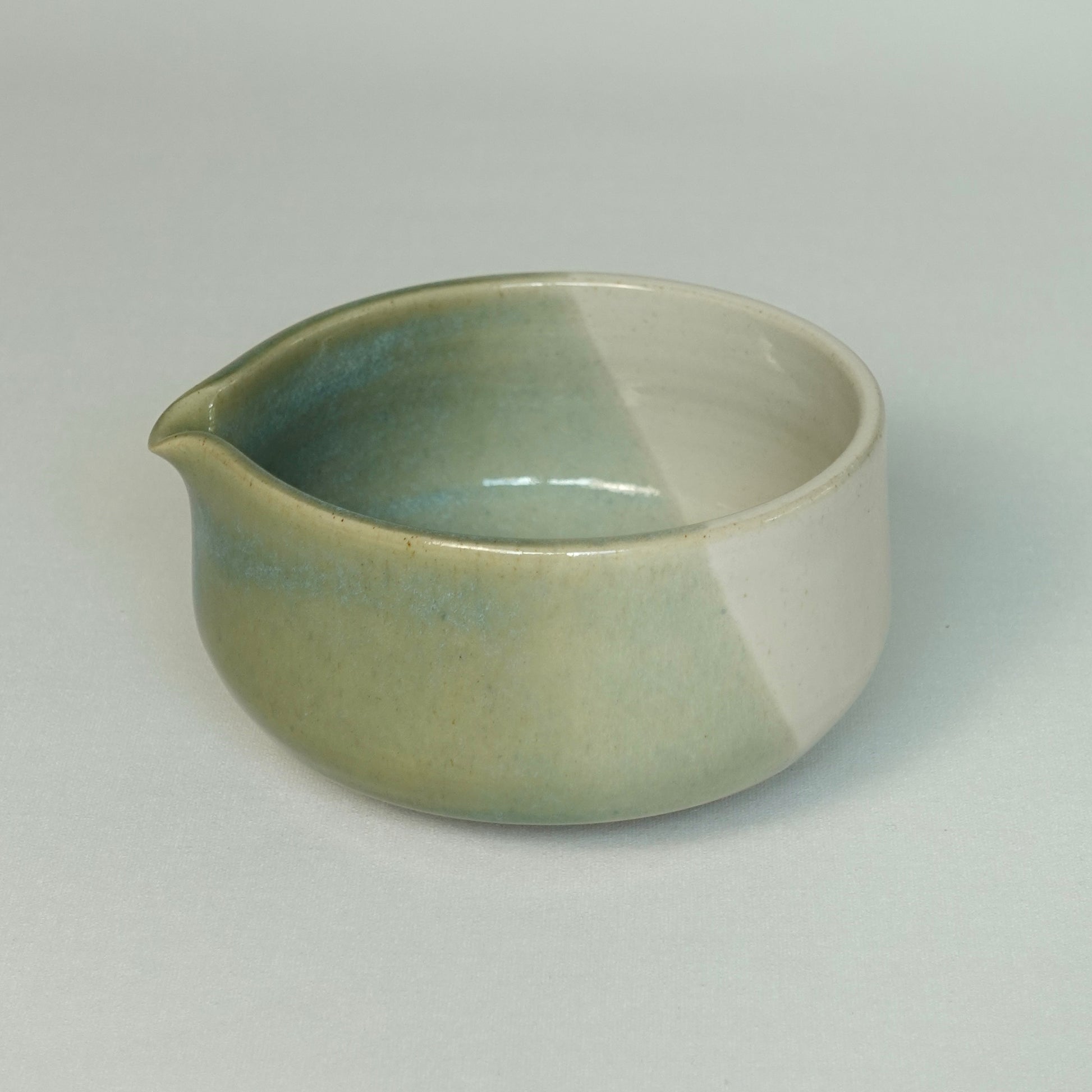 Ce bol à matcha, fabriqué avec soin à partir de grès irlandais de qualité, allie tradition japonaise et touche moderne grâce à son petit bec verseur. Chaque pièce, façonnée à la main, invite à la contemplation et à la sérénité, offrant une pause de calme au cœur de votre journée.